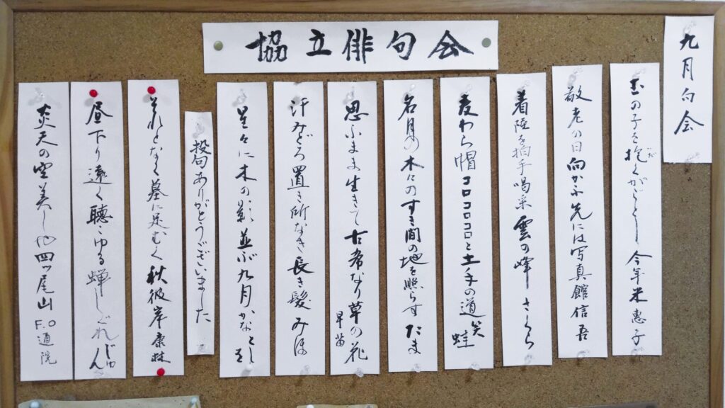 2025-10-16 / 最終更新日 : 2025-10-16 master 協立俳句会 協立俳句会(友の会サークル)作品紹介 待合室で掲示しています 2025年10月例会分を掲載しました 協立俳句会の過去分作品はこちらから 訪問看護師募集 -在宅ケアステーションげんき- 在宅ケアステーションげんきから訪問看護に挑んでみませんか、ホームケアに“元気”をすみずみまで FacebookXBlueskyHatenaCopy