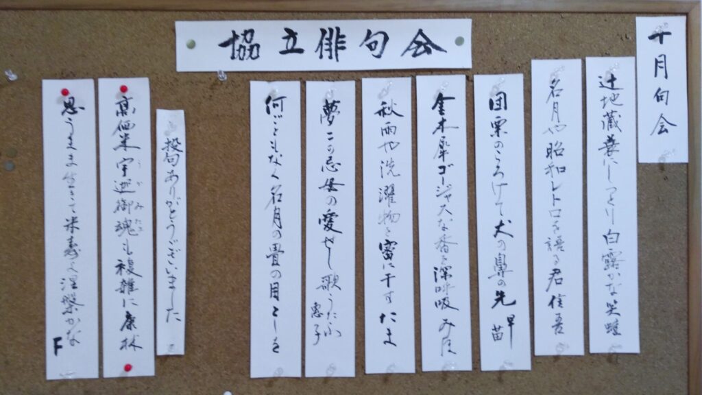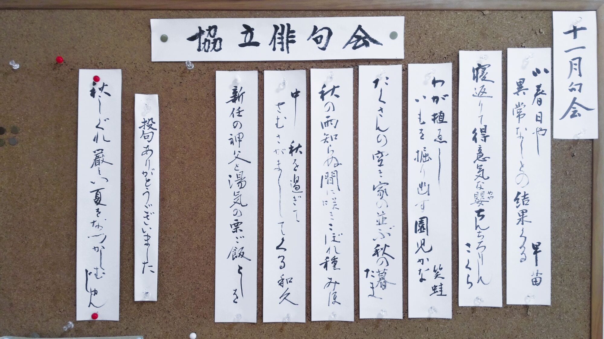 2025-11-15 / 最終更新日 : 2025-11-15 master 協立俳句会 協立俳句会(友の会サークル)作品紹介 待合室で掲示しています 2025年11月例会分を掲載しました 協立俳句会の過去分作品はこちらから 訪問看護師募集 -在宅ケアステーションげんき- 在宅ケアステーションげんきから訪問看護に挑んでみませんか、ホームケアに“元気”をすみずみまで FacebookXBlueskyHatenaCopy