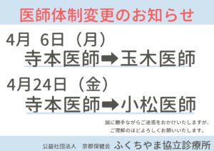 | 午前 | 8:30~ 12:00 | 9:00~ 12:00 | 寺本 | 寺本 | 小松 | 澤田 | 寺本 | 第1・3・5川﨑 第2・4澤田 |