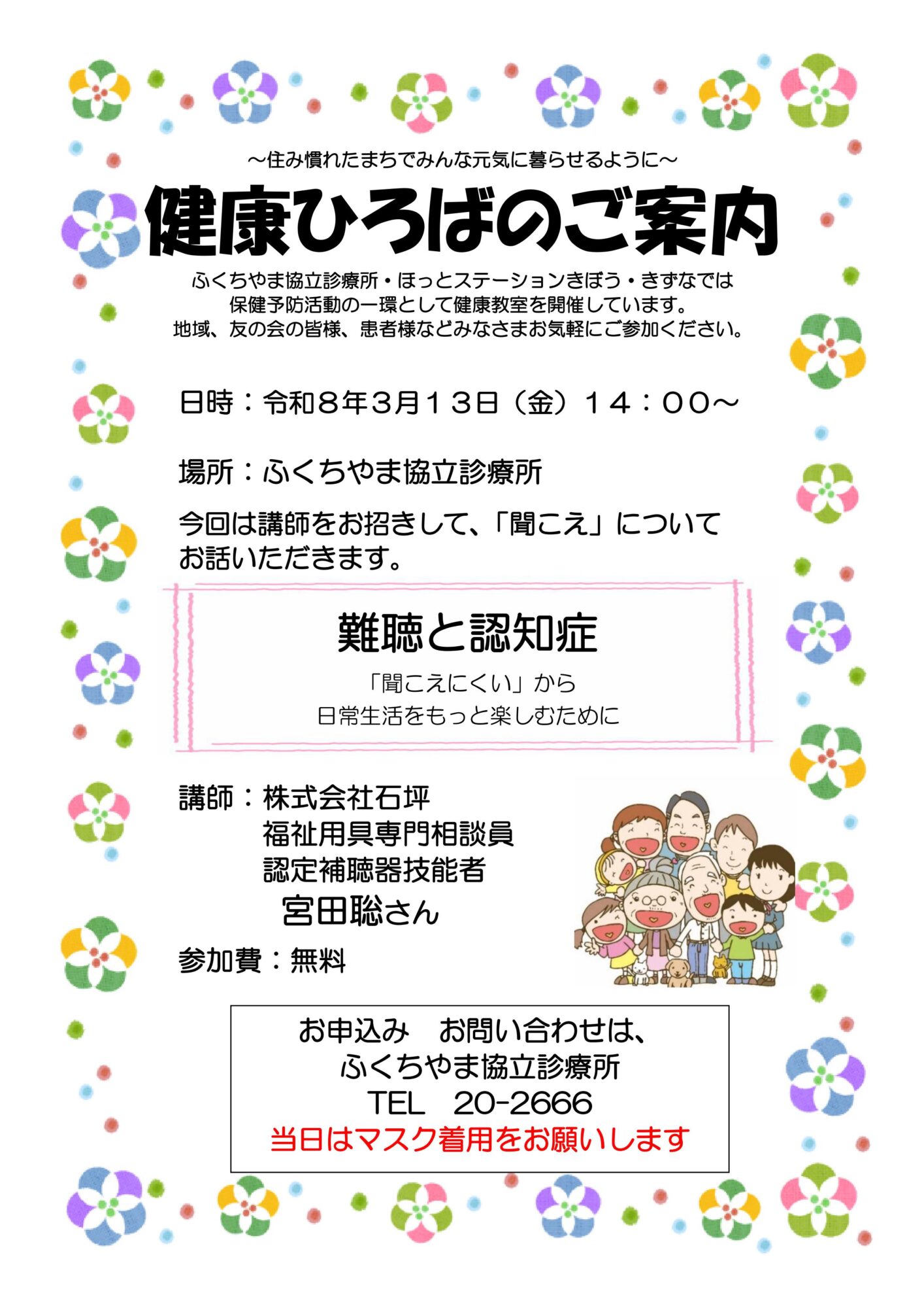 2026-02-19 / 最終更新日 : 2026-02-19 master ご案内 健康ひろば「難聴と認知症」(3/13) 案内を掲載しました ふくちやま協立診療所 HPH HPHとは、Health Promoting Hospitals & Health Services(健康増進活動拠点病院等)の略で、ヘルスプロモーションを実践するためにWHO(世界保健機関)が開始した国際的なネットワークです。 ふくちやま協立診療所は2021年2月に加盟し、患者さん・地域の方・職員の健康づくりの支援をとおして健康なまちづくりに貢献します。 FacebookXBlueskyHatenaCopy