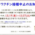12/19(金)~12/27(土)のBCG接種は中止させていただきます