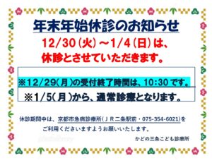 2025-12-18 / 最終更新日 : 2025-12-18 master 子育て懇談会 ベビーマッサージ(1/15)案内を掲載しました ネット受付をご利用くださいませ診察順、ワクチン予約です。 午前、夜の診察は、当日診察順番受付を 午後のワクチン外来は、24時間ネット受付で ネット受付 診察順、ワクチン予約FacebookXBlueskyHatenaCopy