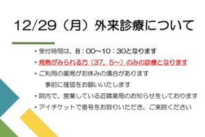 | 午後 | ワクチン外来 予約制 | 13:45~15:20 | ○ | |||||