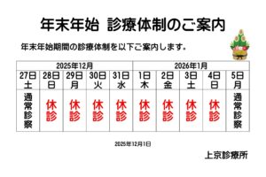 「年末年始 診療体制のご案内」を掲載しましたNew!!