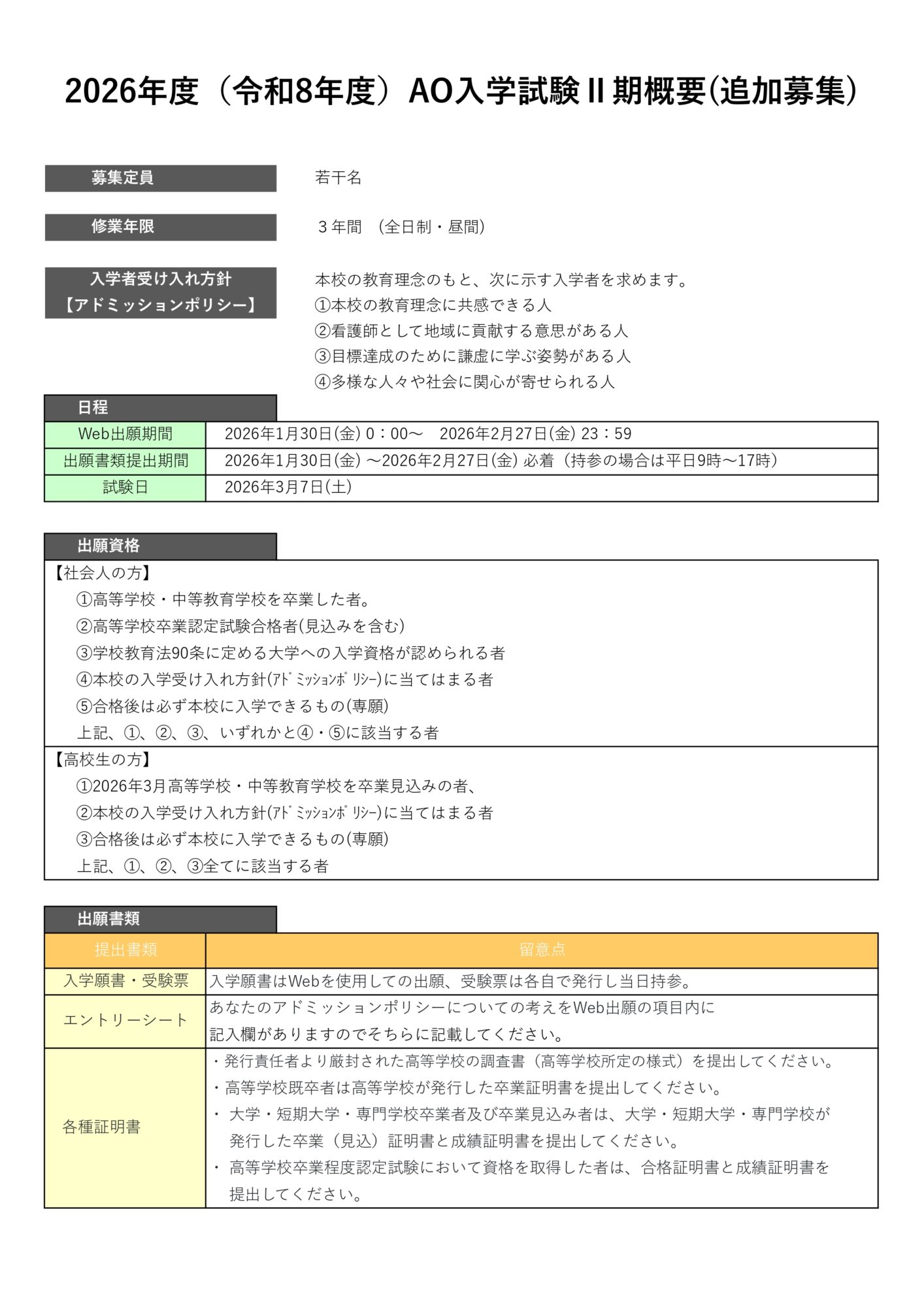 2026年度AO入学試験Ⅱ期(追加募集)Web出願開始しました