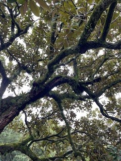 会場の植物園会館を出てすぐのところには、樹高20メートルは超えようかという泰山木(タイサンボク)の巨木があり、あまりの立派さに、つい見とれました。案内板を読むとそれは戦前から残る古木とのこと。