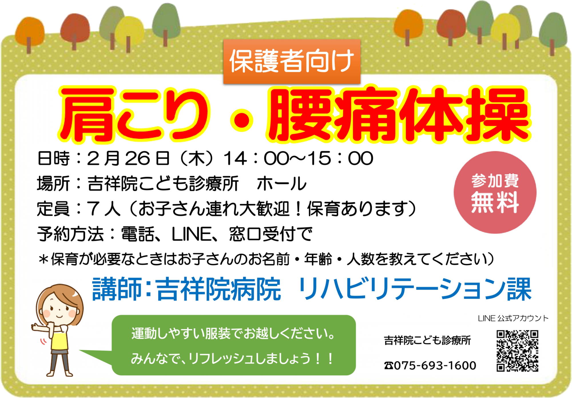 【保護者向け】肩こり・腰痛体操(2/26)案内を掲載しました