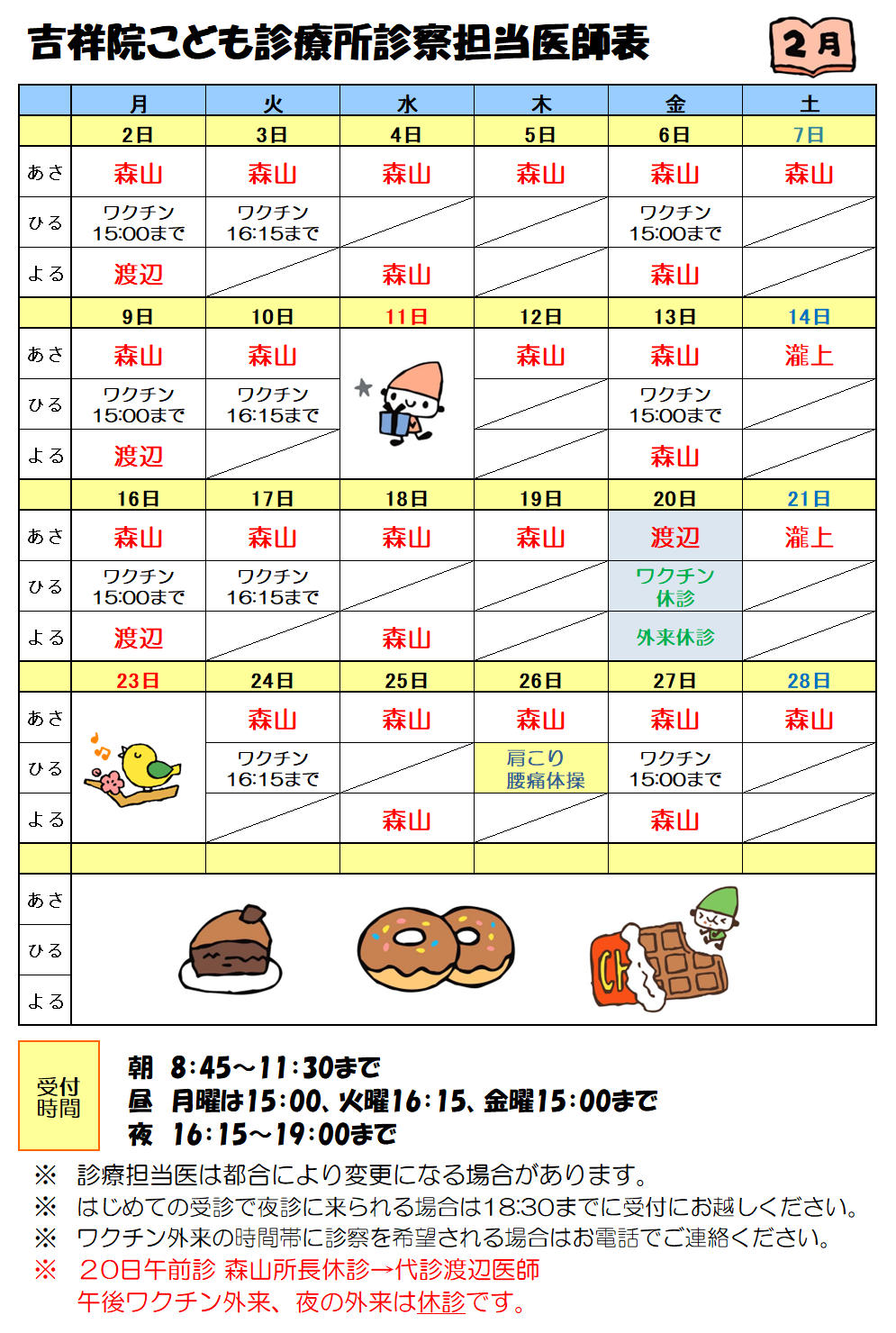 ■2/20(金) 午前診 森山所長休診→代診渡辺医師