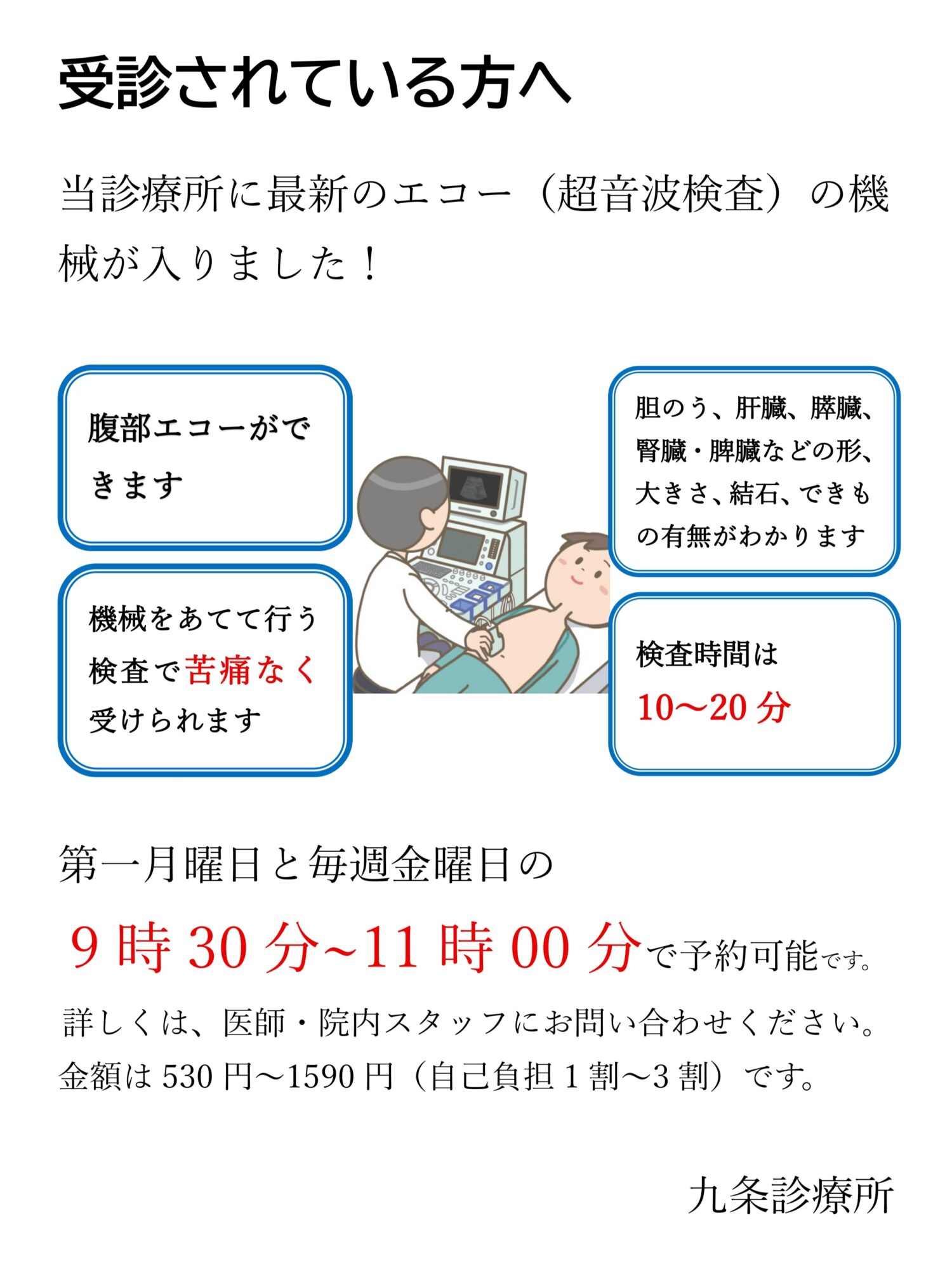 腹部超音波検査(腹部エコー検査)は、腹部に超音波を当てて、内臓から返ってくる反射波を画像化して腹部臓器に異常がないかどうかを調べる検査です。