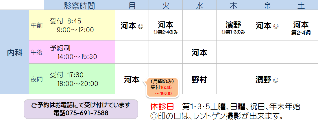 お気軽にお問い合わせください。医科075-691-7588 歯科691-5131診療・受付時間内にお願いします。