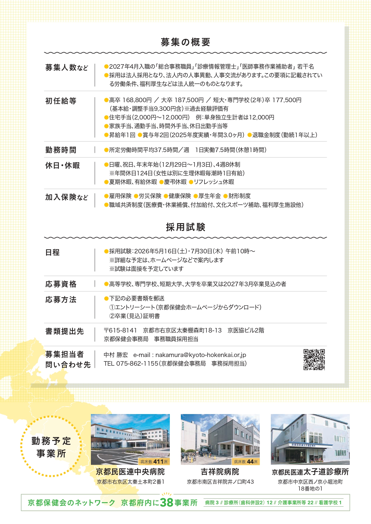 TEL: 075-862-1155(京都保健会事務局 事務採用担当) |